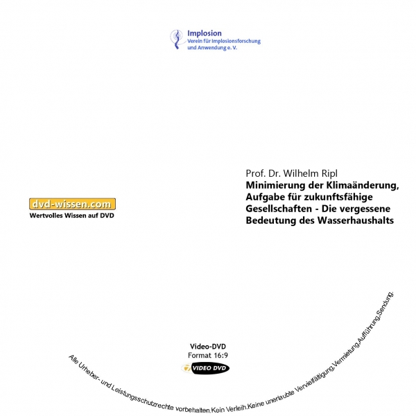 Prof. Dr. Wilhelm Ripl: Minimierung der Klimaänderung, Aufgabe für zukunftsfähige Gesellschaften – Die vergessene Bedeutung des Wasserhaushalts